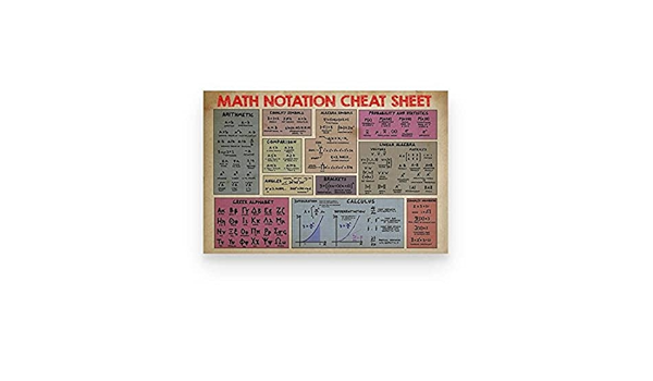Amazon Com Gearsly Math Notation Cheat Sheet Calculus Poster No Frame Or Framed Canvas 0 75 Inch Print In Us Novelty Quote Meaningful Motivational Posters Prints
