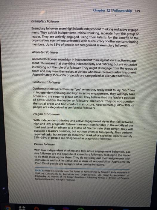 Solved Complete The Followership Questionnaire Post Your Chegg Com