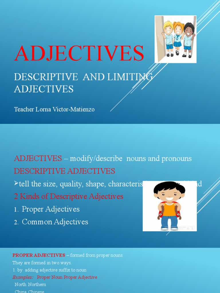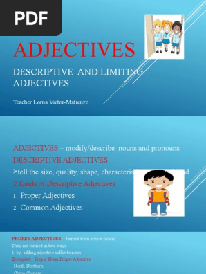 Adjectives Desciptive And Limiting Pdf Adjective Noun